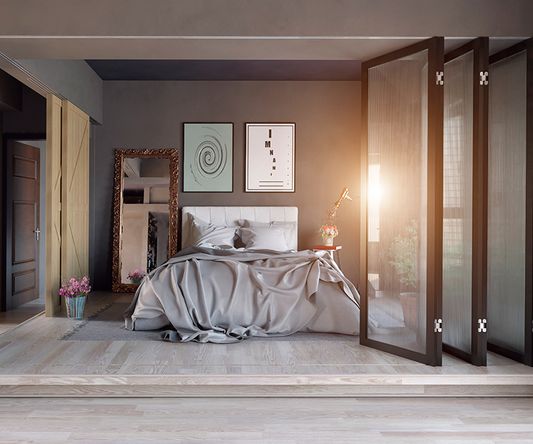 Межкомнатные перегородки — удобный дизайнерский прием для оформления современного интерьера. Межкомнатные перегородки смещаются вправо или влево или могут иметь несколько перемещаемых блоков. С их помощью можно легко решить вопрос с экономией пространства и зонированием помещения. Помимо этого такие двери отлично справляются с шумоизоляцией и блокируют распространение запахов, если они установлены между кухней или столовой и другими комнатами. Они также могут создать отдельную комнату, отделив часть большого помещения, таким образом, удобно сделать, например, гардеробную в спальне.